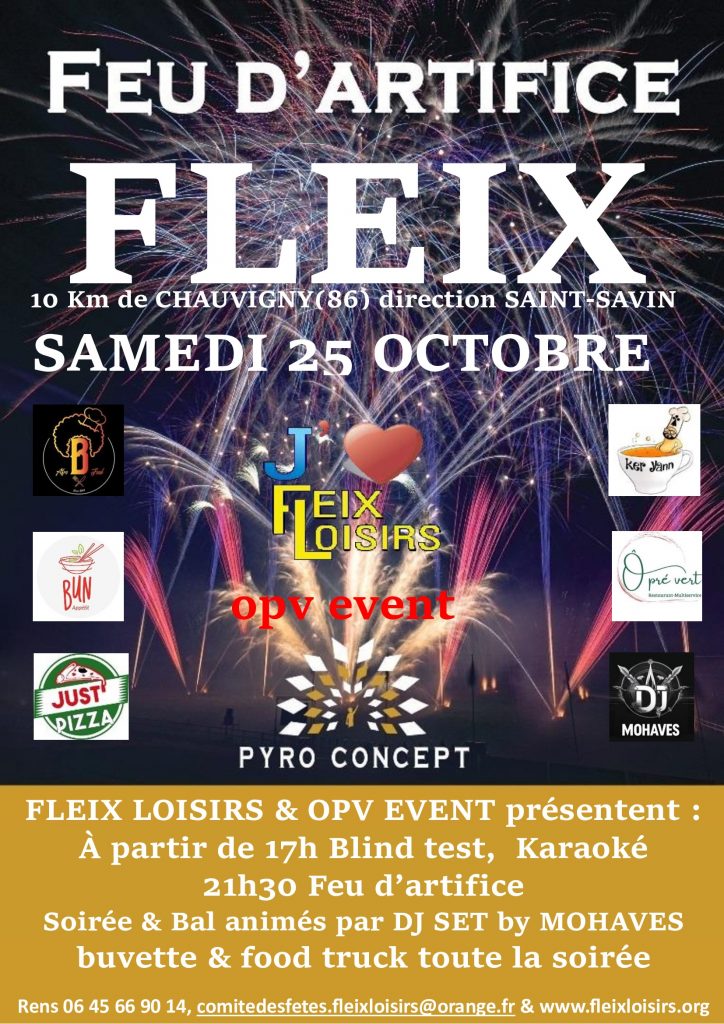 Pour palier à ce manque indépendant de notre volonté, FLEIX LOISIRS a décider d’organiser une fête le samedi 25 octobre à partir de 17h à l’arrière de la salle des fêtes de Fleix.